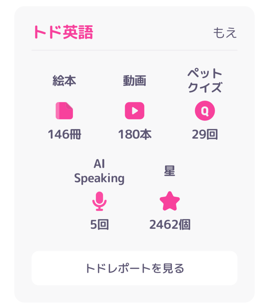 トド英語は自分のレベルや集めた星の数などがわかるので、ゲーム感覚で達成感も得られるようになっています。