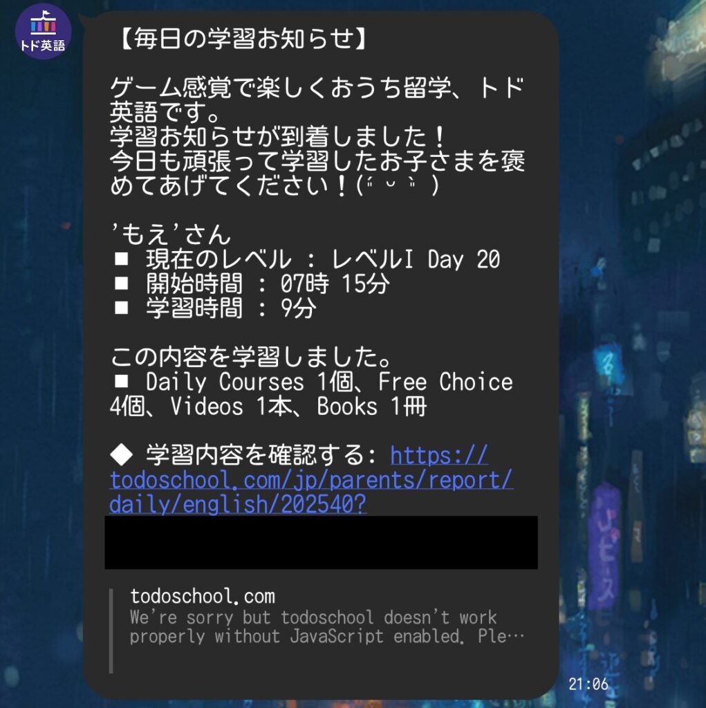 LINEに記載されたURLを押せば、トド英語の公式サイトでより詳しいレポートも確認することができます。